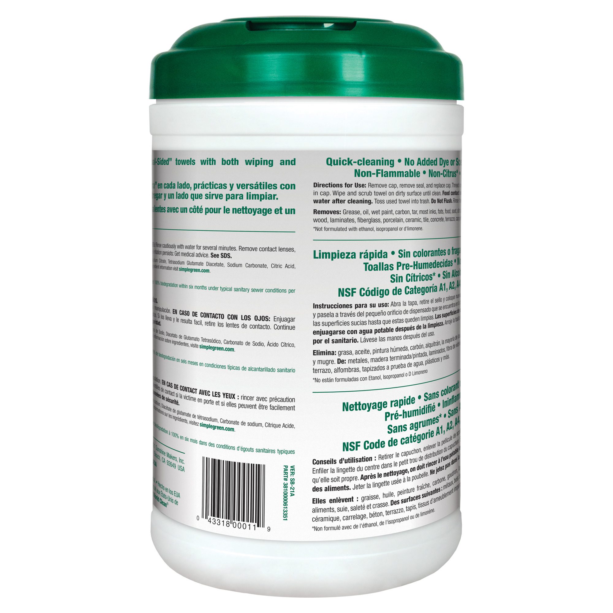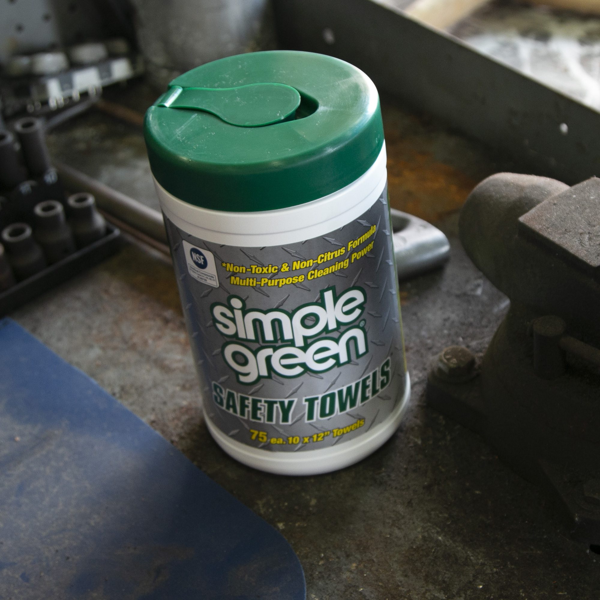 Las toallas de seguridad Simple Green son toallitas de doble cara que pueden cortar la grasa, la suciedad y los residuos en el equipo, la maquinaria y las piezas fabricadas. También están registrados por la NSF para su uso en instalaciones de procesamiento de alimentos y cocinas comerciales.