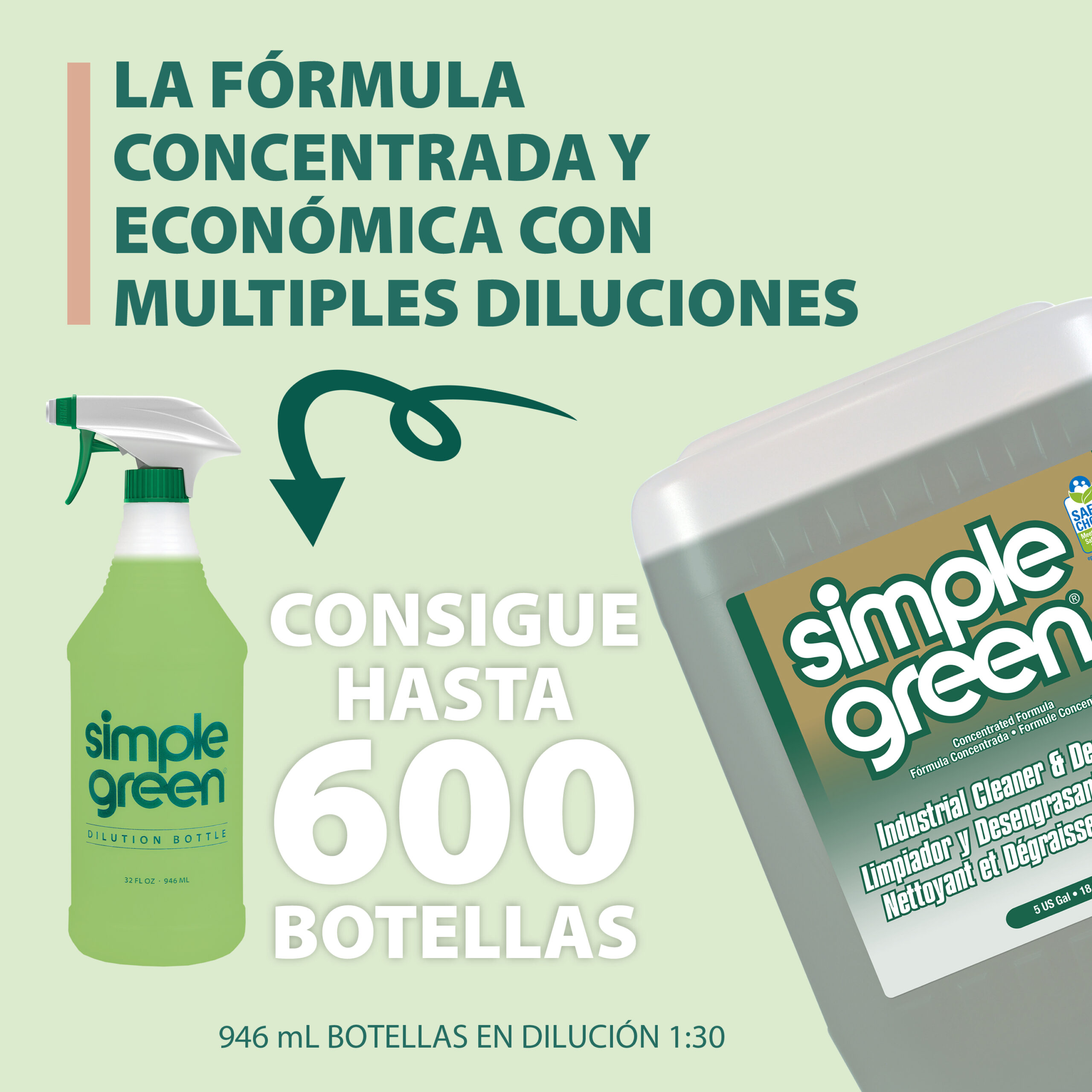 Simple Green es el versátil limpiador y desengrasante multiusos con una agradable y suave fragancia, seguro y biodegradable. No es corrosivo, no es abrasivo. Por su química más segura es ideal para usar en todo tipo de labores de mantenimiento y limpieza en la industria.